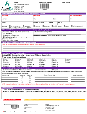 Requisition Form - CGx Hereditary Cancer / Diabetes - ALTRU